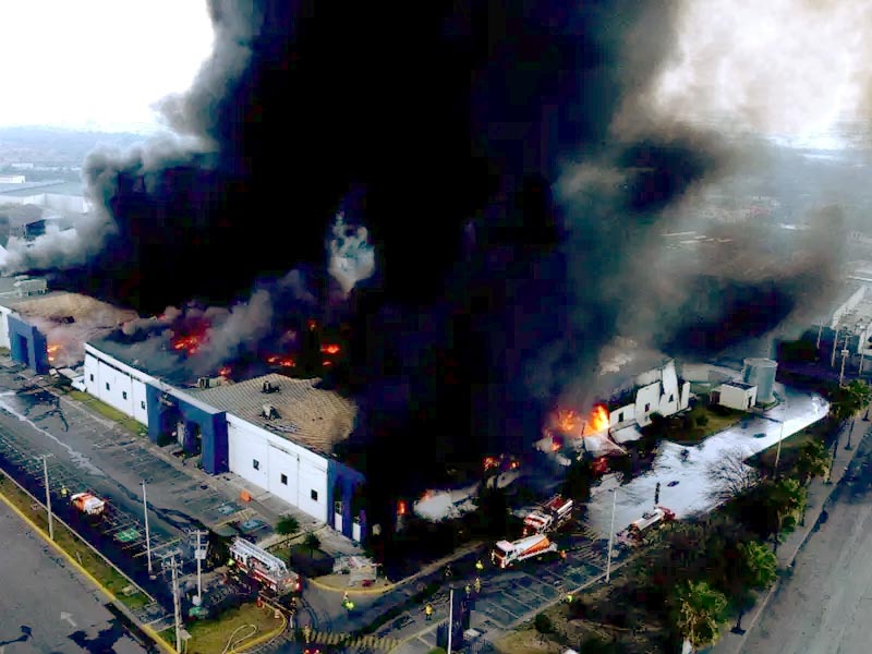En Apodaca, Nuevo León, se registra un fuerte incendio en una fábrica de inyección de resina ubicada en el parque industrial, lo cual llevó a que un total de 102 personas fueran evacuadas de manera preventiva.