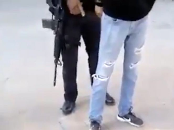 El momento del arresto fue captado en video por una persona que se encontraba en el lugar y se aprecia cuando los policías, quienes llevaban armas largas, colocan esposas al joven y los suben a una unidad.