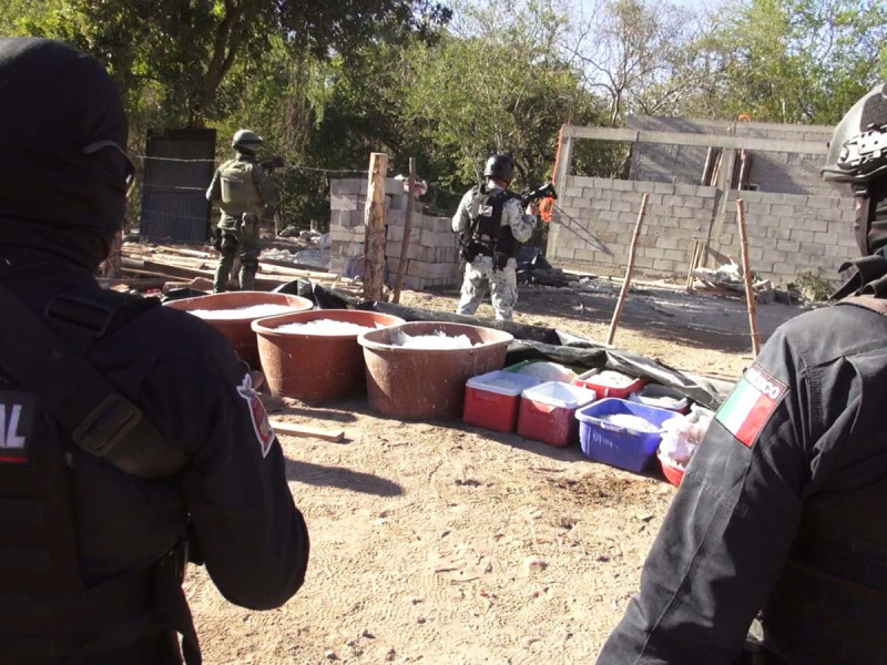 Y unos días después, en ese mismo municipio, aseguraron un laboratorio de droga sintética, capaz de producir hasta 3 toneladas de metanfetamina diariamente, y que según, a sus propias estimaciones, tenía al menos un año de haber estado operando.