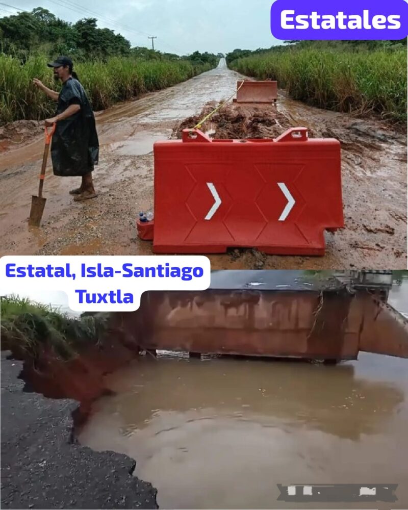 El Ayuntamiento de Santiago Tuxtla, Veracruz, informa cierre de circulación sobre la carretera Santiago Tuxtla-Isla, tras el colapso de un puente.