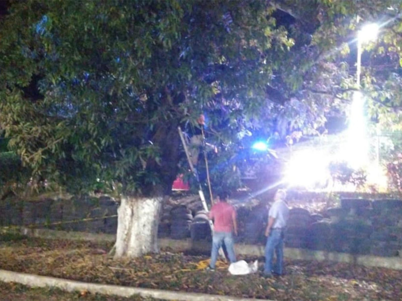 Al llegar al lugar, paramédicos y personal de protección civil informaron que en un árbol se encontraba una persona identificada como Félix N, vecino de la comunidad de Las Pilas, quien presentaba quemaduras propias de haberse electrocutado.