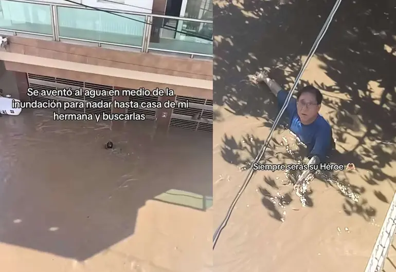El hecho fue captado en video y compartido a través de TikTok por una de las hijas del protagonista, en la cuenta @ladelostenis. En las imágenes se observa al hombre nadando entre las aguas turbias, con el objetivo de llegar hasta sus familiares, quienes no podían salir por sus propios medios debido al nivel de la inundación.