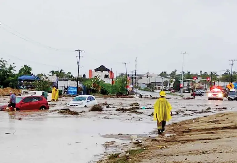 Debido a las intensaas lluvias que ya afectan a los estados del noroeste, en Baja California Sur y Sonora se suspendieron las clases en todos los niveles y los estragos del meteoro ya son patentes.