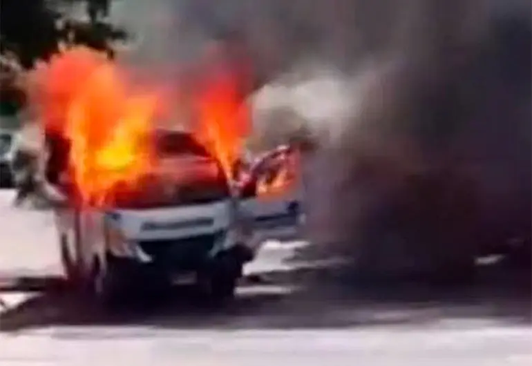 Posteriormente, aproximadamente a las 11 de la mañana, dos desconocidos le prendieron fuego a una camioneta Urvan de transporte público de la ruta Chilpancingo-Amojileca, a la altura de las colonias del PRD y Omiltemi.