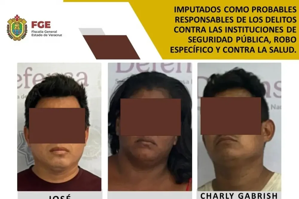 La Fiscalía Regional Coatzacoalcos realizó imputación en contra de José Guadalupe “N”, Lucrecia “N” y Charly Gabrish y/o Charly Gabriel “N”, considerados objetivos prioritarios en la zona de Agua Dulce, como probables responsables de los delitos contra las instituciones de seguridad pública, robo específico en su modalidad de detentación de vehículo con reporte de robo y contra la salud.