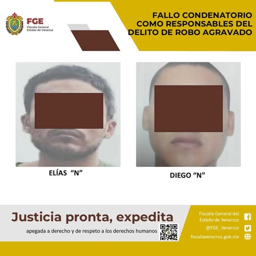 Cosamaloapan, Ver., 14 de julio 2025.- La Fiscalía Regional Cosamaloapan logró fallo condenatorio en contra de Elías “N” y Diego “N” como responsables del delito de robo agravado, cometido en agravio de la víctima J.G.L., dentro del juicio oral 16/2025.