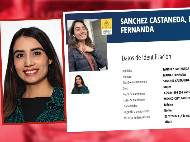 A 13 días de la desaparición de María Fernanda Sánchez Castañeda, la Interpol se sumó a la búsqueda de la estudiante mexicana y emitió una ficha amarilla a fin de localizarla. La joven se encontraba en Berlín, Alemania, donde estudiaba una maestría.