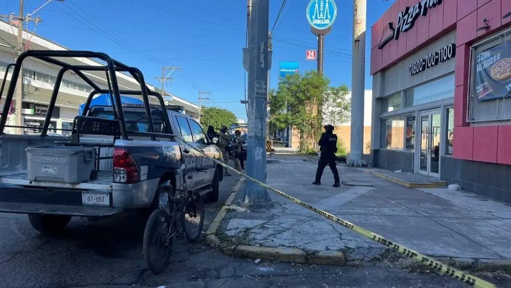 Al sitio llegaron elementos de la Policía Municipal y de la Marina, por lo que ya no pudo salir; en tanto que elementos policiacos acordonaron toda la zona de pizzería.