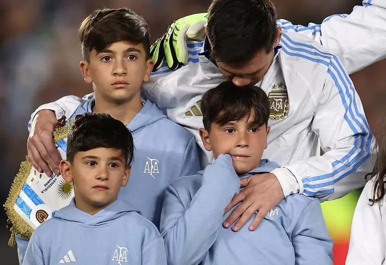 Para la ceremonia de los himnos nacionales, ‘La Pulga’ estuvo acompañado por sus tres hijos, Thiago, Ciro y Mateo, además de Antonela Roccuzzo –su esposa- en uno de los palcos del recinto en Buenos Aires.