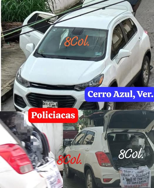 La unidad según los datos que se dieron conocer se encontraba abierta de la cajuela con una lona colgada y una leyenda dirigida a un presunto grupos delictivo, sin especificar cuál, pero refería el siguiente texto :