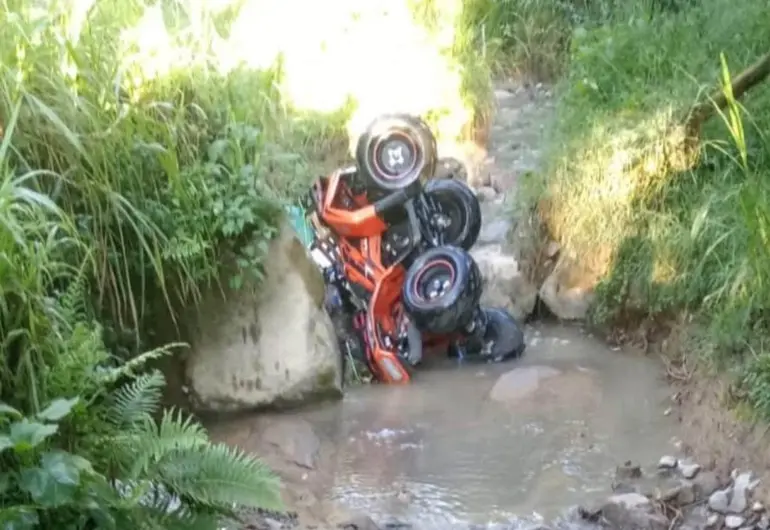 Vecinos de la comunidad y autoridades iniciaron una búsqueda la mañana del miércoles, muy temprano y localizaron volcado el cuatrimoto cerca de un arroyo.