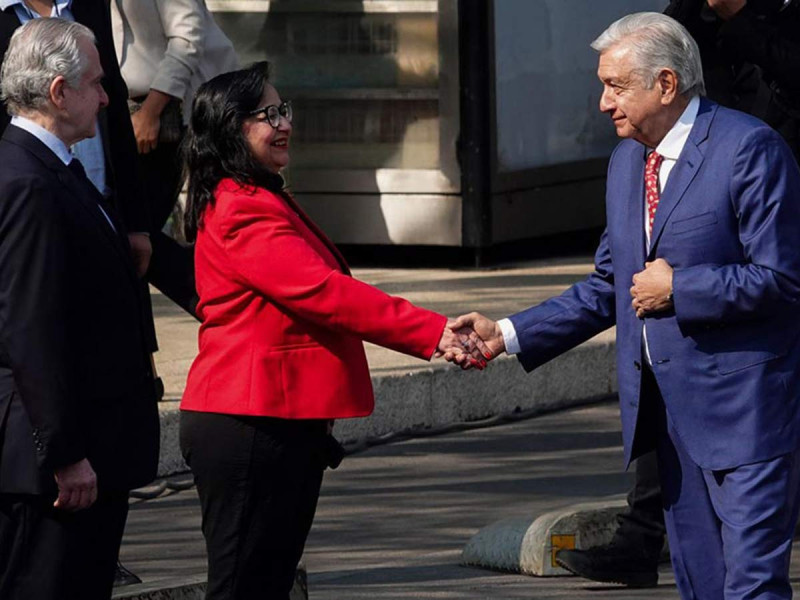 Al arribar al la plaza de la constitución tras ser custodiado por los cadetes del heroico colegio militar, saludar a la escolta de bandera , López Obrador se dirigió al templete central donde ya se encontraban los integrantes de su gabinete y en el que previamente, el secretario de Gobernación, Adán Augusto López Hernández al igual que la secretaria de Seguridad y Protección Ciudadana, Rosa Icela Rodríguez Velázquez saludaron de beso a la ministra Piña Hernández.
