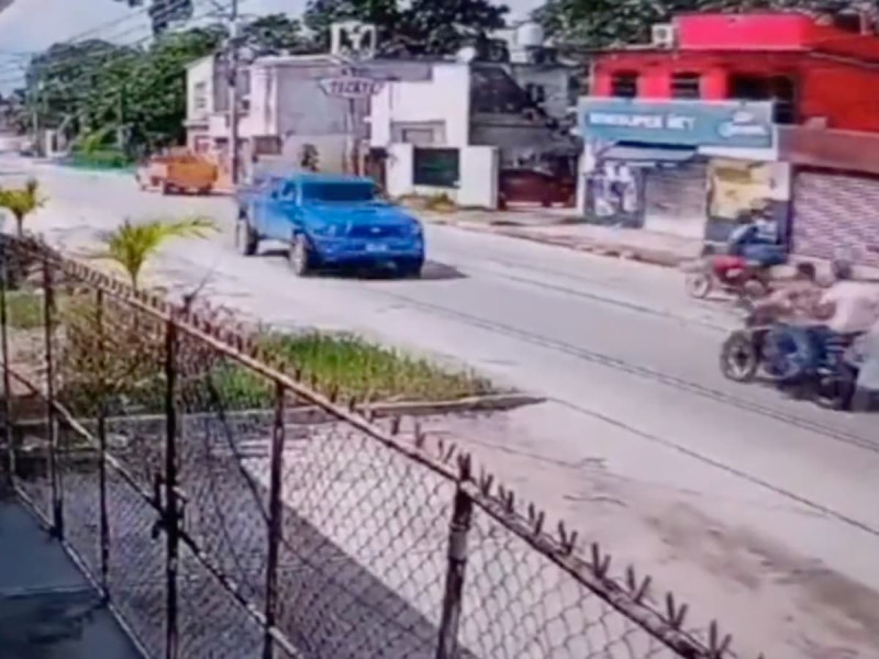 El trágico evento ocurrió en la mañana del domingo, a las 10:53 horas, según lo documentado por una cámara de seguridad en la colonia Ranchería Moctezuma, en Paraíso, Tabasco. El video muestra el momento preciso en que la motocicleta, que llevaba dos pasajeros, fue impactada por una camioneta Tacoma azul. El impacto fue tan violento que uno de los ocupantes fue proyectado a varios metros en el aire, sufriendo un mortal golpe contra el pavimento.
