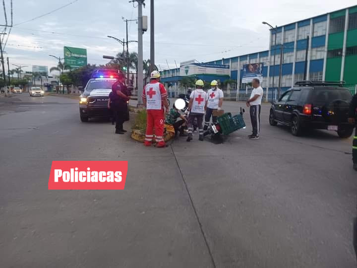 Motociclista resulta lesionado al chocar contra camioneta en la Colonia Dos caminos