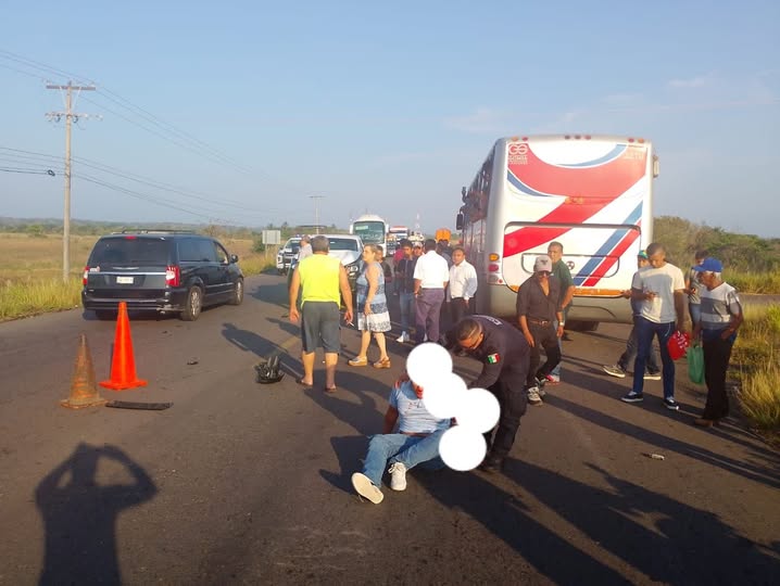 El motociclista tuvo la mala fortuna de chocar con un autobús de pasaje Los Tuxtlas, dejando su unidad debajo de la llanta del autobús; al sitio acudió la Unidad Médica de Protección Civil de Alvarado, la cual brindó atención al joven que presentaba fractura de tobillo con exposición y hemorragia activa, además de contusión frontal, todo esto en su lado izquierdo.