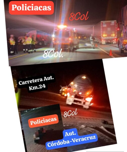 Muere masculino presuntamente arrollado por una pipa en la carretera autopista Córdoba-Veracruz