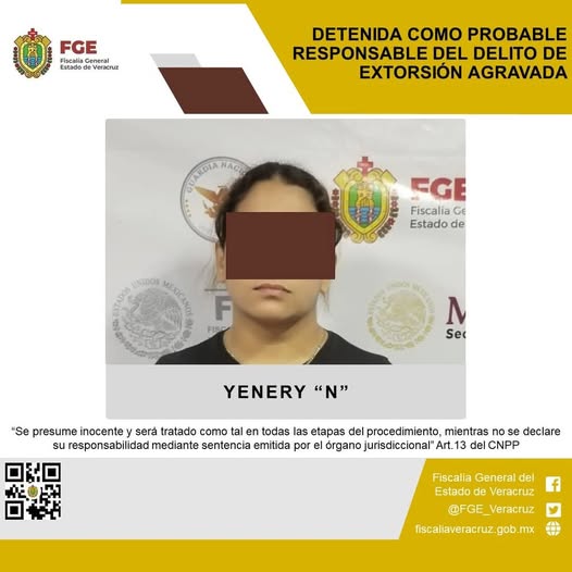 Xalapa, Ver., 9 de abril 2025.- La Fiscalía General del Estado, a través de la Unidad Especializada en Combate al Secuestro en colaboración con la Unidad Contra el Secuestro de la Ciudad de México, cumplimentó orden de aprehensión en contra de Yenery “N” como probable responsable del delito de extorsión agravada.