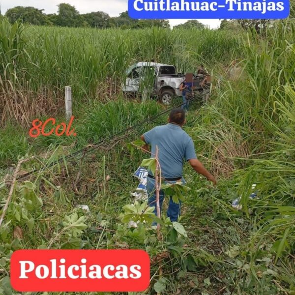 CUITLAHUAC, VER. (8Col.) 31/07/2025.-  Un aparatoso accidente de una camioneta que al parecer era  manejada  a exceso de velocidad cuando circulaba a la salida del municipio, a la altura del lugar conocido como el papayal de la carretera federal Cuitláhuac -La Tinaja, deja un saldo final de una persona fallecida y dos lesionados.