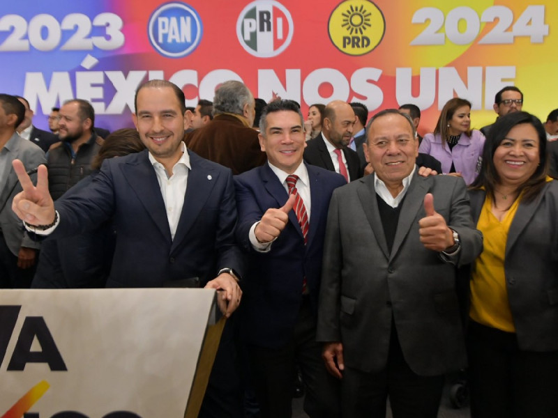 Acompañados por militantes de los tres partidos, Marko Cortés, Alejandro Moreno y Jesús Zambrano informaron que irán en alianza y que será Acción Nacional el encargado de conducir la elección de candidatos para la Presidencia y la Jefatura de Gobierno.