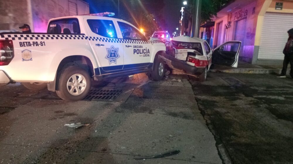 Orizaba, Ver.— Durante la madrugada de este miércoles, una patrulla de la policía local de Orizaba impactó un taxi en el norte de la ciudad, el accidente ocurrió en la Norte 8, en la circunvalación Norte.