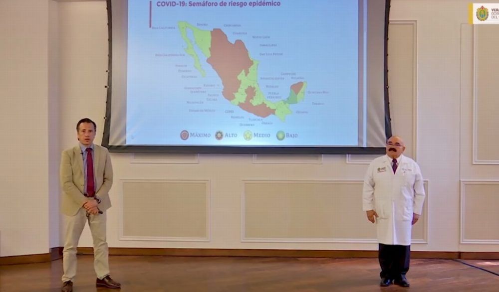 En compañía del secretario de Salud, Roberto Ramos Alor, el mandatario destacó que gracias a las acciones implementadas por el gobierno estatal y federal se logró aplanar la curva y no se llegó al pico del momento crítico.