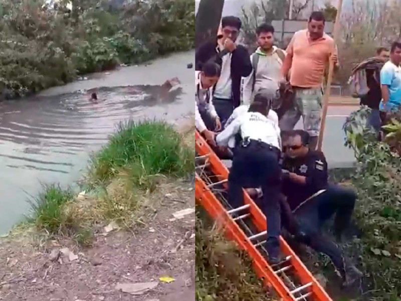 En redes sociales han felicitados a los elementos que actuaron de forma rápida y eficaz para rescatar a la persona que estaba luchando por mantenerse a flote en las aguas negras.