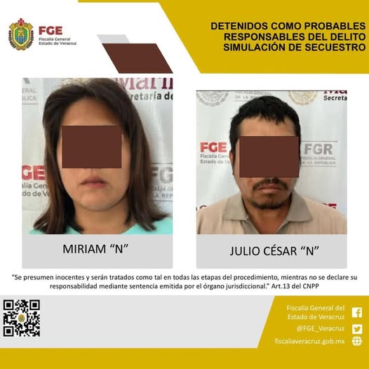 Las Choapas, Ver., 1 de marzo 2025.- La Fiscalía General del Estado, a través de la Unidad Especializada en combate al Secuestro, realizó la detención de Julio César “N” y Miriam “N” como probables responsables del delito de simulación secuestro.