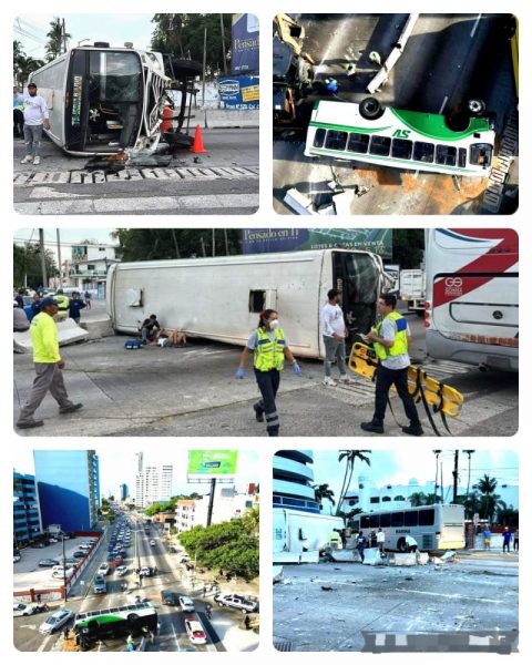 Subrayó a la audiencia que “de sur a norte, hay paso, hay algo de tráfico obviamente y bueno, pues el chofer venía en estado de ebriedad, como bien lo comentaban hay dos lesionados que ya fueron trasladados uno al hospital de Boca del Río y uno al IMSS y bueno, lo que estamos esperando en estos momentos es el retiro del camión, que llegue una grúa especializada para hacer maniobra…”