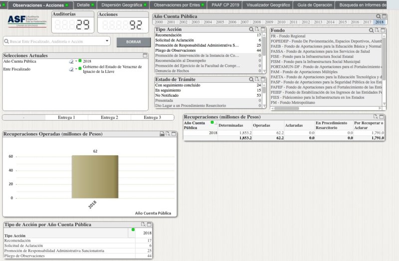 El probable daño patrimonial en el 2018, sumó 1 mil 790 millones de pesos con observaciones a diez fondos federales, entre ellos : Recursos del Fondo de Aportaciones para la Nómina Educativa y Gasto Operativo, Recursos del Fondo Regional, Escuelas de Tiempo Completo.
