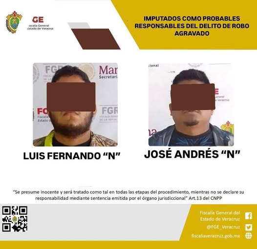 Naranjos, Ver., 8 de mayo de 2025.- Un juez de control de esta demarcación judicial emitió imputación en contra de Luis Fernando “N” y José Andrés “N” como probables responsables del delito de robo agravado cometido en agravio de la cadena comercial Oxxo S.A. de C. V.