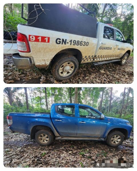 Acto seguido, realizaron una inspección a las unidades y al verificar el estatus de ambas confirmaron que cuentan con reporte de robo. Cabe mencionar que una de las camionetas estaba rotulada con logos y número económico de la Guardia Nacional.