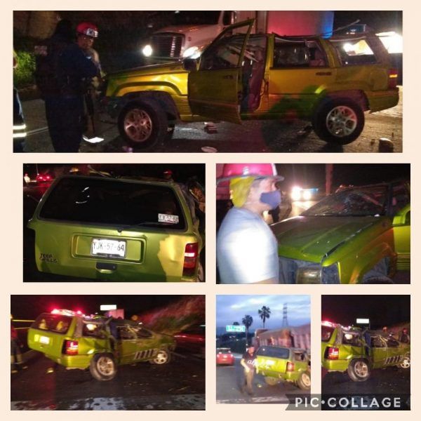 La camioneta tipo Jeep Cherokee resultó con fuertes daños materiales tras la volcadura la cual se dirigía en dirección al norte.