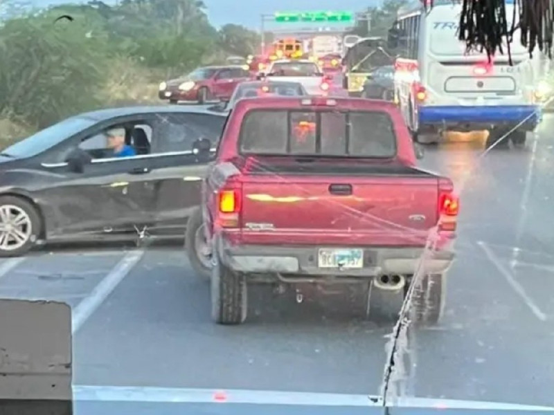 A través de redes sociales circularon videos e imágenes de camiones y vehículos detenidos en la carretera Río Bravo-Reynosa debido a la balacera, presuntamente entre integrantes del Cártel del Golfo.
