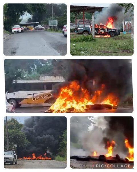 Circulan imágenes de una patrulla de la Fuerza Civil la cual esta incendiada, se ignora si sea en la misma zona y si tenga algo que ver sobre los bloqueos, aunque algunos audios indican que fue devido al malestar de personas