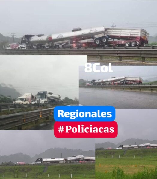 Indican de un choque por alcance (carambola) en donde en este momento se registra además una intensa lluvia en esa zona, por el cual se indica tomar precauciones o tomar vías alternas como lo es la carretera libre.