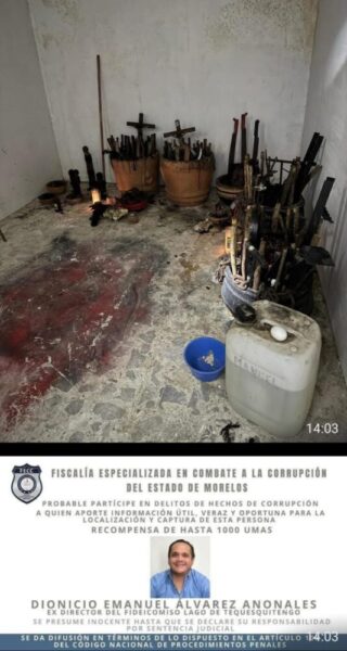 Fueron hallados cráneos, sangre y mandíbulas humanos y de animales en una casa propiedad de Dionicio Álvarez, ex funcionario cercano al ex gobernador de Morelos, Cuauhtémoc Blanco. La Fiscalía de ese estado solicitó el apoyo de Servicios Periciales, así como a la Fiscalía Especializada en Desaparición Forzada de Personas.