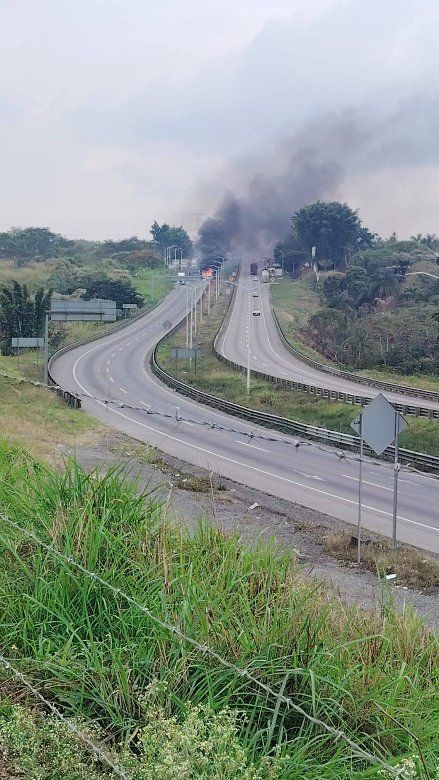 Al menos en la entidad veracruzana un tráiler fue incendiado a la altura del km.287 cerca de las 11:34 de la mañana, otro punto en el km 265 cerca a la conocida curva de los marranos. Ubicada a las 10:56 am.