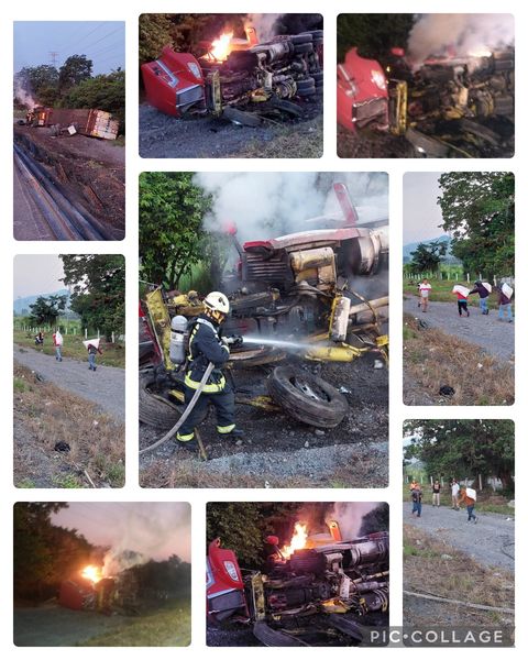 Aunque se ignoran las causas el tráiler se salió de la carretera volcó sobre uno de sus costados pero este se incendio al parecer por derrame de combustible.