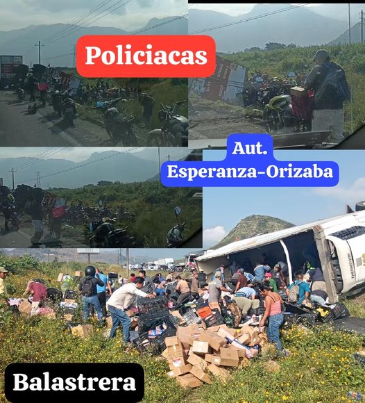 Al sitio llegaron elementos de la Policía Municipal, Estatal y de la Guardia Nacional, así como paramédicos de Capufe, los cuales tomaron conocimiento, confirmaron que no había personas lesionadas y observaron como las personas que arrasaban con toda la carga.