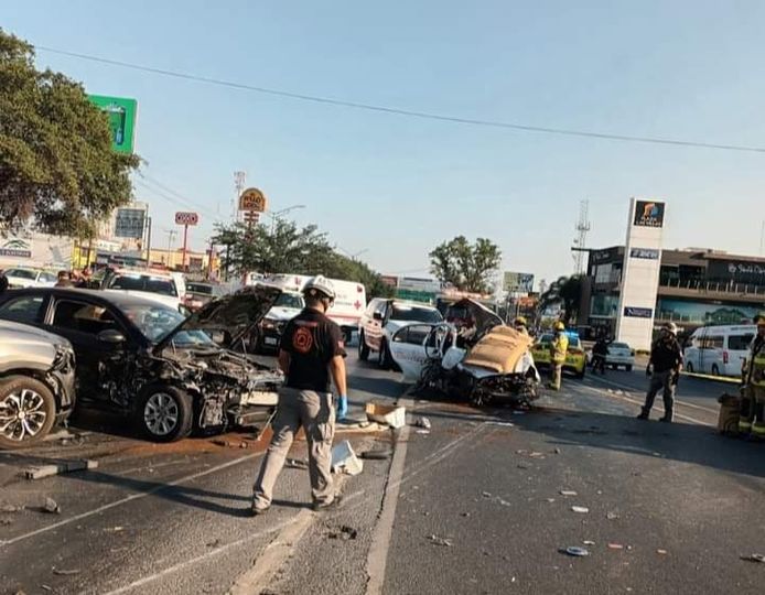 El fuerte choque múltiple se registró en la avenida Eugenio Garza Sada y Salto del Agua de Cd. Satélite, Monterrey Nuevo Leon