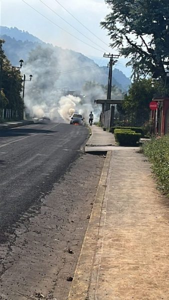 Reportan que un automóvil se está incendiando en la calle principal que lleva al Centro de #Alpatlshuac.
