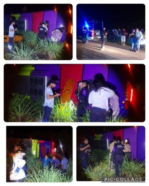 ISLA, VER.- La noche del sábado 24 de junio, 15 Personas resultaron lesionadas cuando viajaban a bordo de una unidad de transporte de la línea Kolors, esto en la carretera Isla – Santiago Tuxtla, ellos viajaban de Puebla con destino a la Ciudad de Coatzacoalcos.
