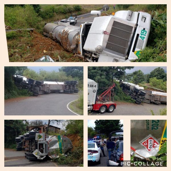 Datos que se dieron a conocer en las redes sociales es que el accidente de la pipa se registró en el lugar conocido como la Estancia ubicado en el Km. 38 hasta donde se dijo de una persona lesionada.