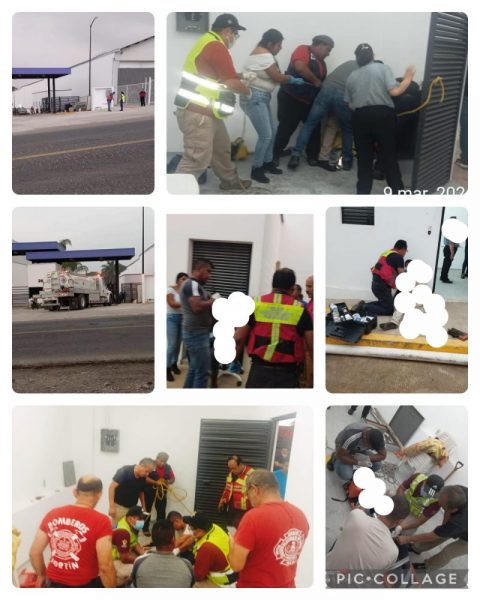 *Se coordinan grupos de auxilio y de rescate para auxiliar a 4 trabajadores que estaban dentro del aljibe.