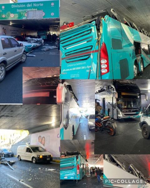 Al accesar al lugar toda la parte del techo del autobús terminó «rebanada» tras el impacto, ya que la circulación es a velocidad algo considerada en esa vialidad.