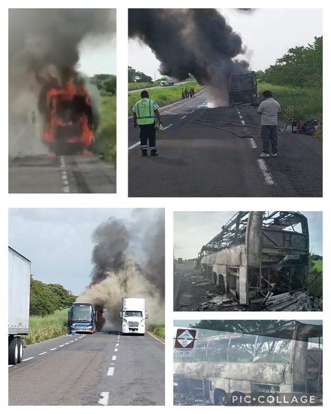 JUAN RODRÍGUEZ CLARA, VER.(8Col).- Un autobús que procedía de Cancún con la selección infantil de jugadores de béisbol, el cual había participado en una justa deportiva de la categoría 9-10, que por cierto lograron el campeonato en la riviera maya, terminó reducida a chatarra tras incendiarse en autopista.