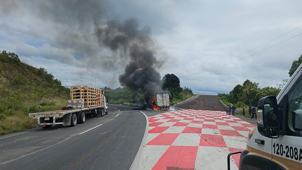 Al lugar acudieron oficiales de la Guardia Nacional, así como paramédicos y personal de Capufe, quienes con una pipa con agua controlaron y sofocaron el incendio en la unidad, aunque lamentablemente el fuego ya había devastado el camión.