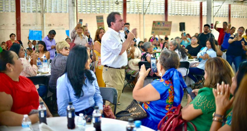 El candidato a gobernador fue recibido en un ambiente de entusiasmo y deseos de renovación. Luego de agradecer las múltiples muestras de apoyo, ofreció un gobierno con perspectiva de género, firme compromiso social y una agenda comprometida con las causas de las mujeres veracruzanas, en vista, dijo, de que el actual gobierno las abandonó.