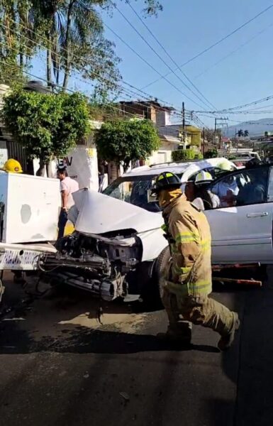 Afortunadamente solo reportaron daños materiales y la persona que conducía la camioneta y autoridades del accidente, se negó a las atenciones de los paramédicos.