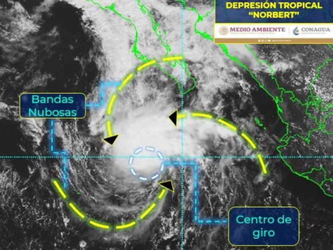 BAJA CALIFORNIA SUR.- La Comisión Nacional del Agua (Conagua) informó que la tarde de este martes los remanentes de “Norbert” en el Océano Pacífico se reorganizaron para formar nuevamente una depresión tropical.